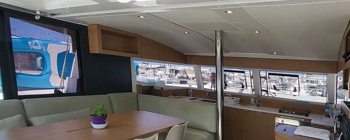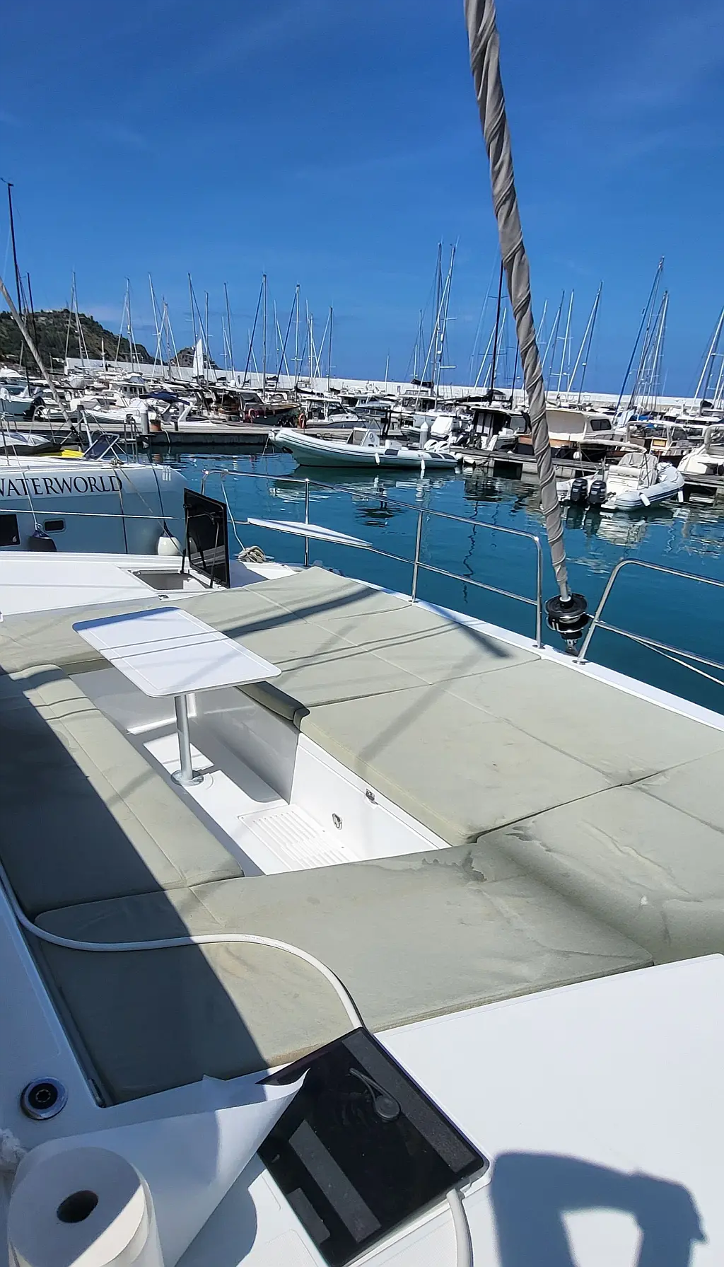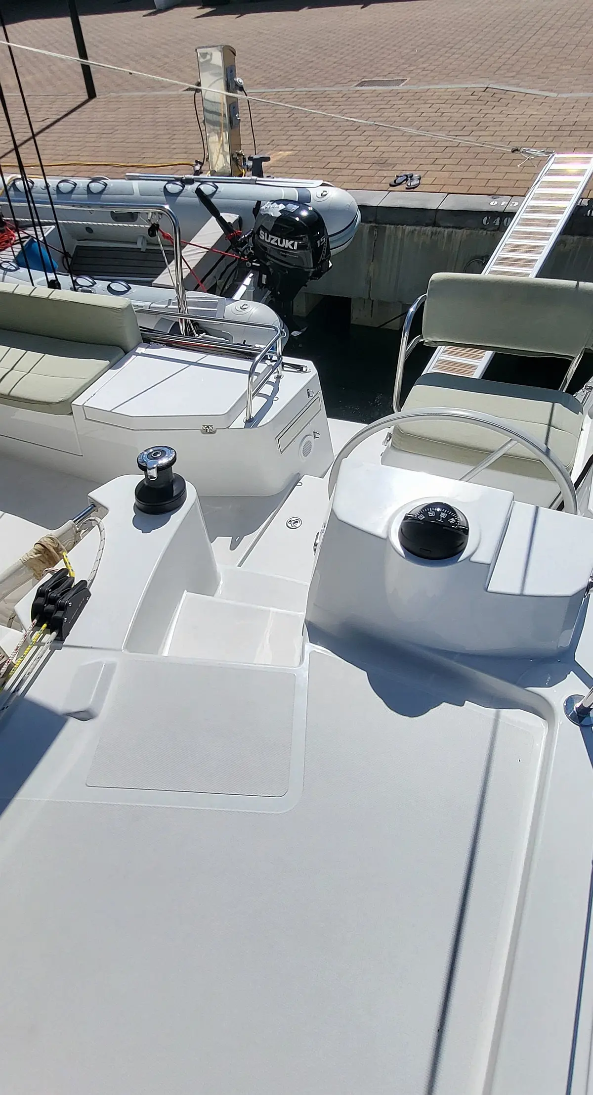 Cockpit cushions, Dinghy, Electric winches, Electric toilet, Coffee maker, Refrigerator, Inverter, Solar Panels, Teak Cockpit, Water maker