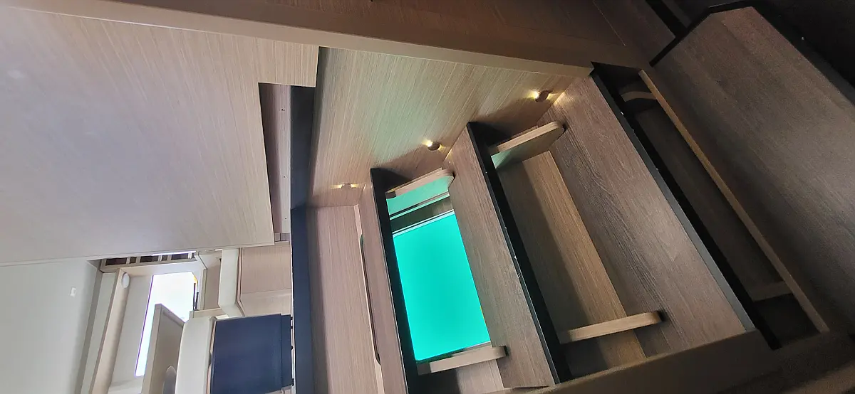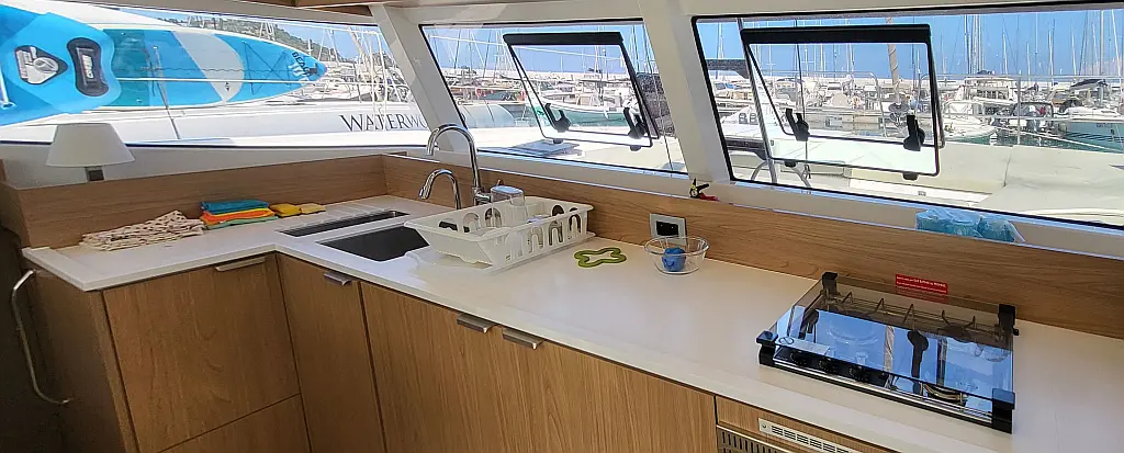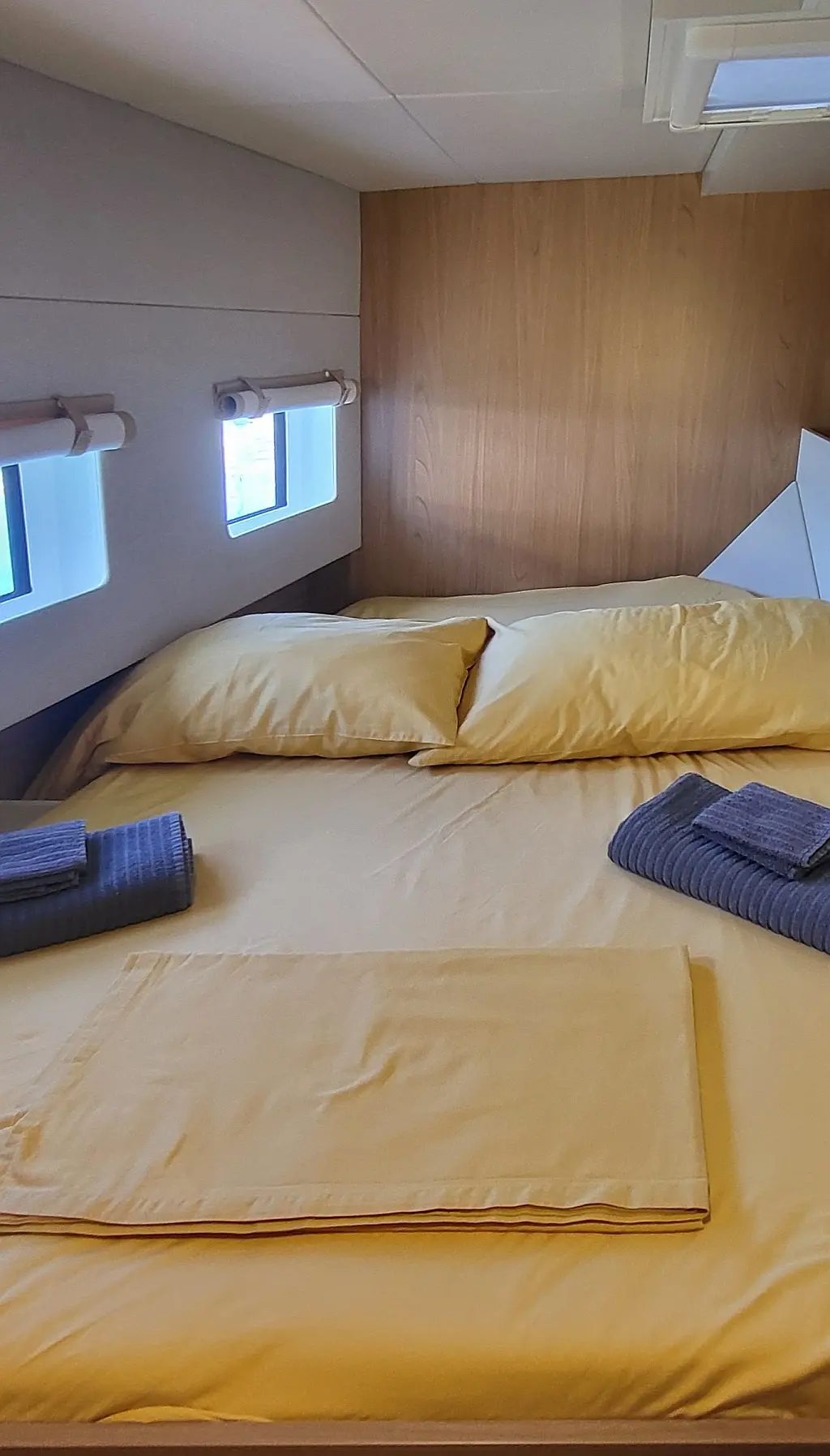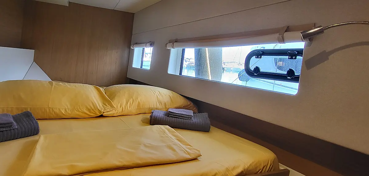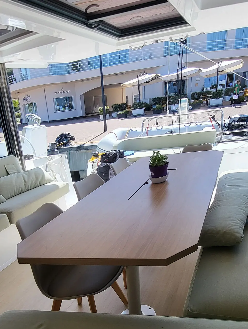 Cockpit cushions, Dinghy, Electric winches, Electric toilet, Coffee maker, Refrigerator, Inverter, Solar Panels, Teak Cockpit, Water maker
