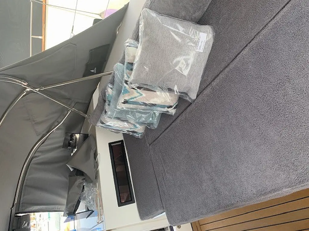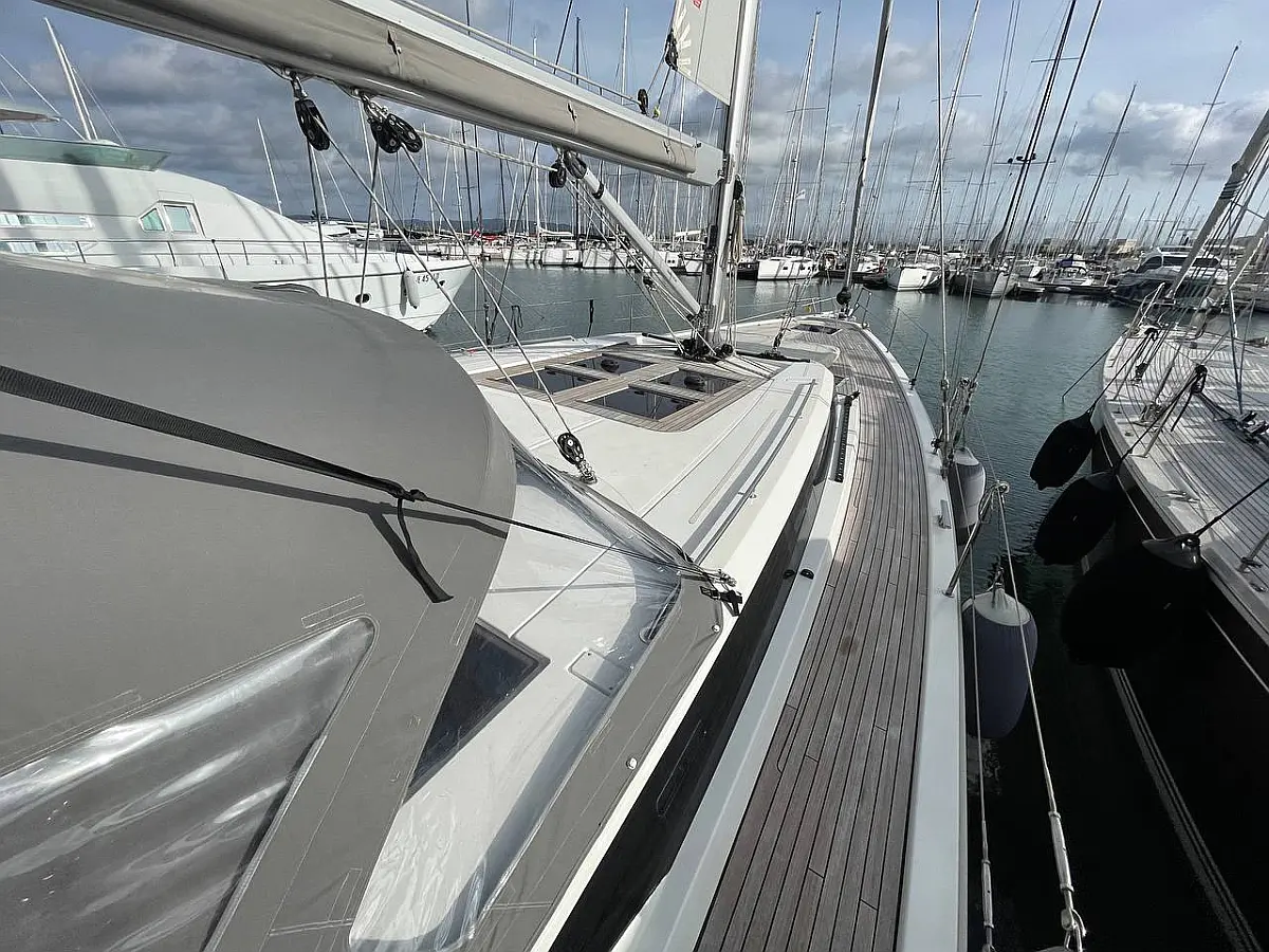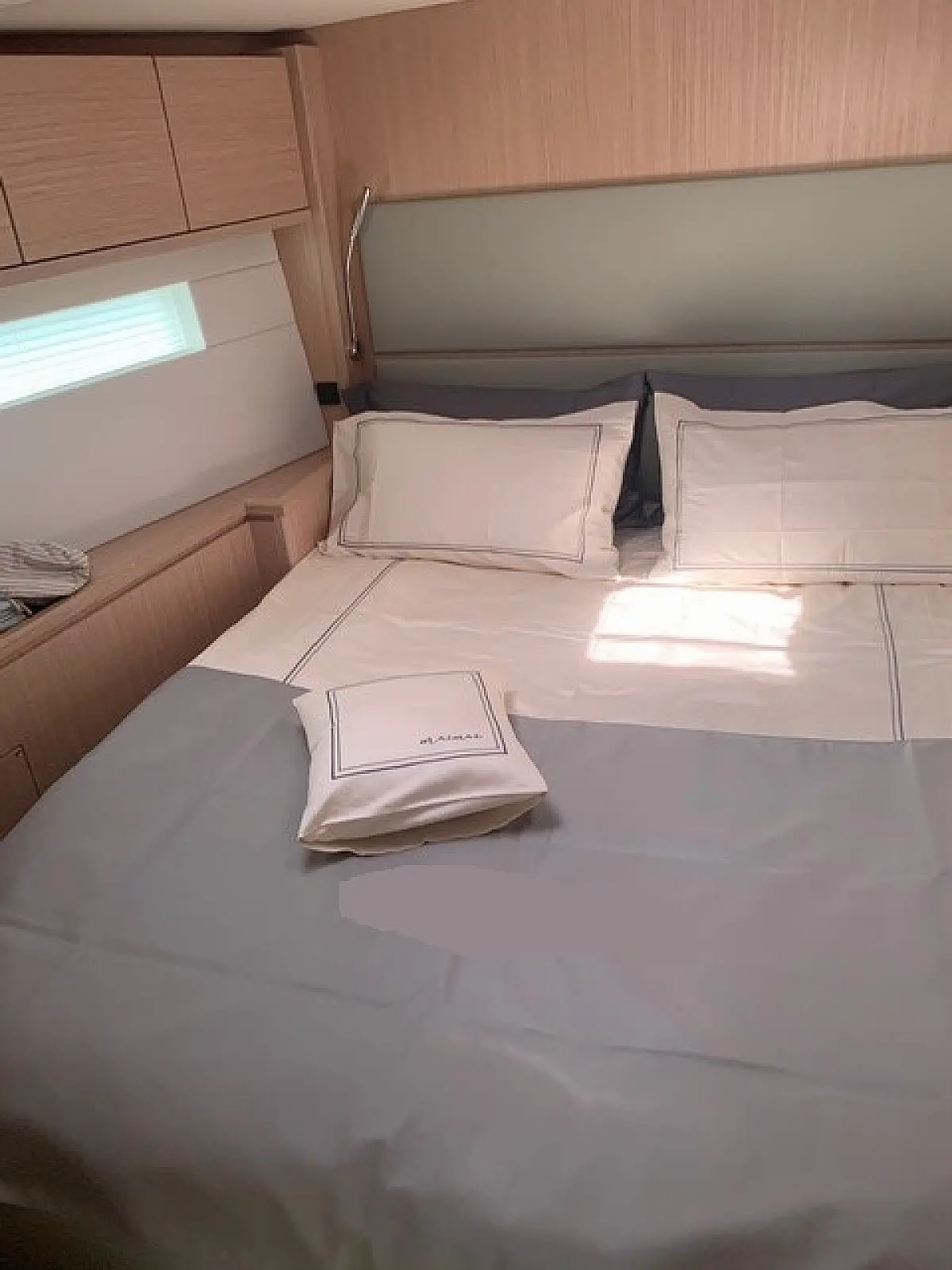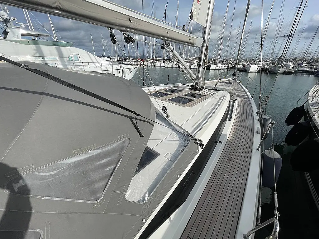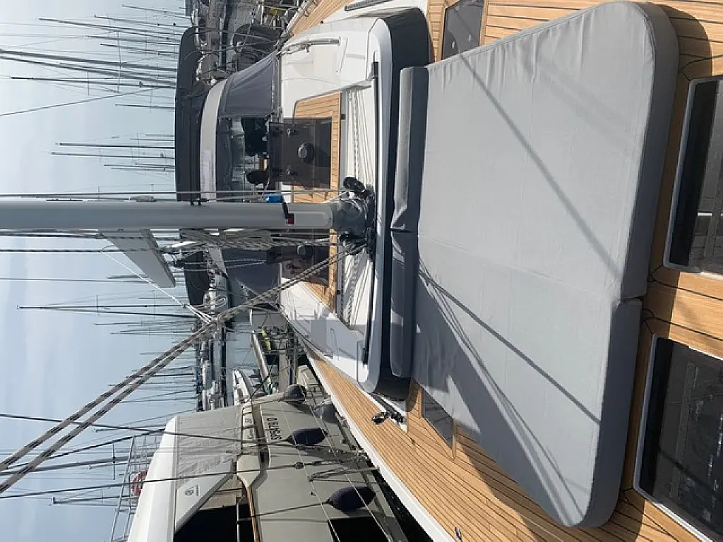 Teak deck, Electric winches, Cockpit cushions, Dinghy, Sprayhood, Inverter, Cockpit speakers, Heating, Air condition, Generator, Water maker