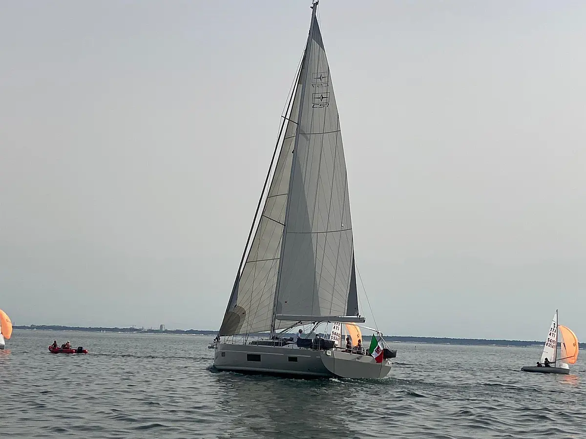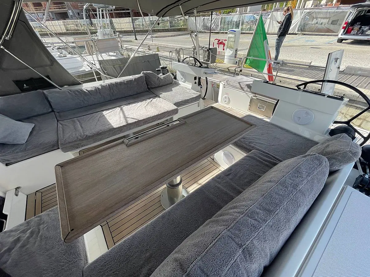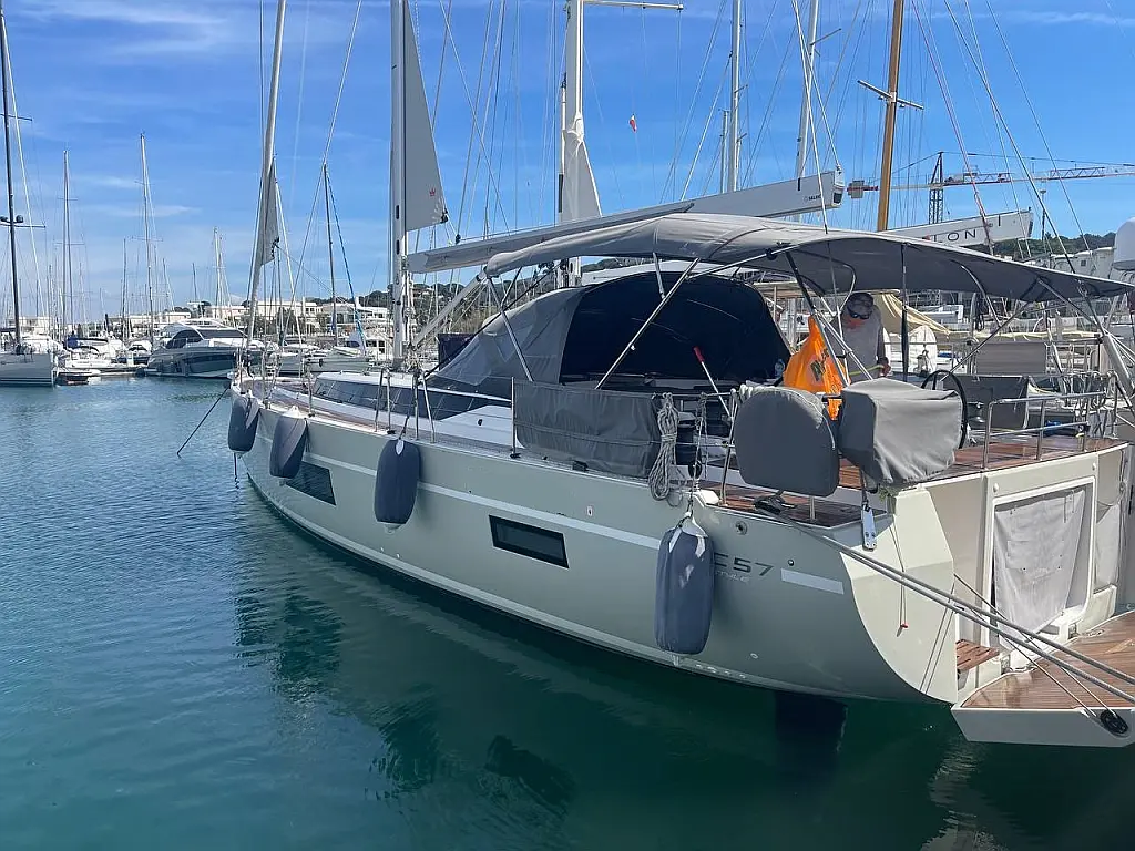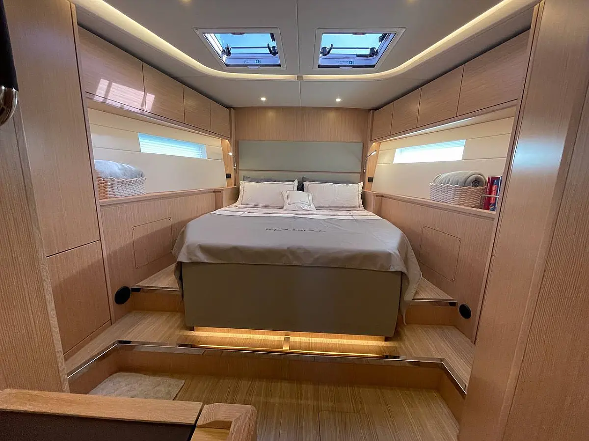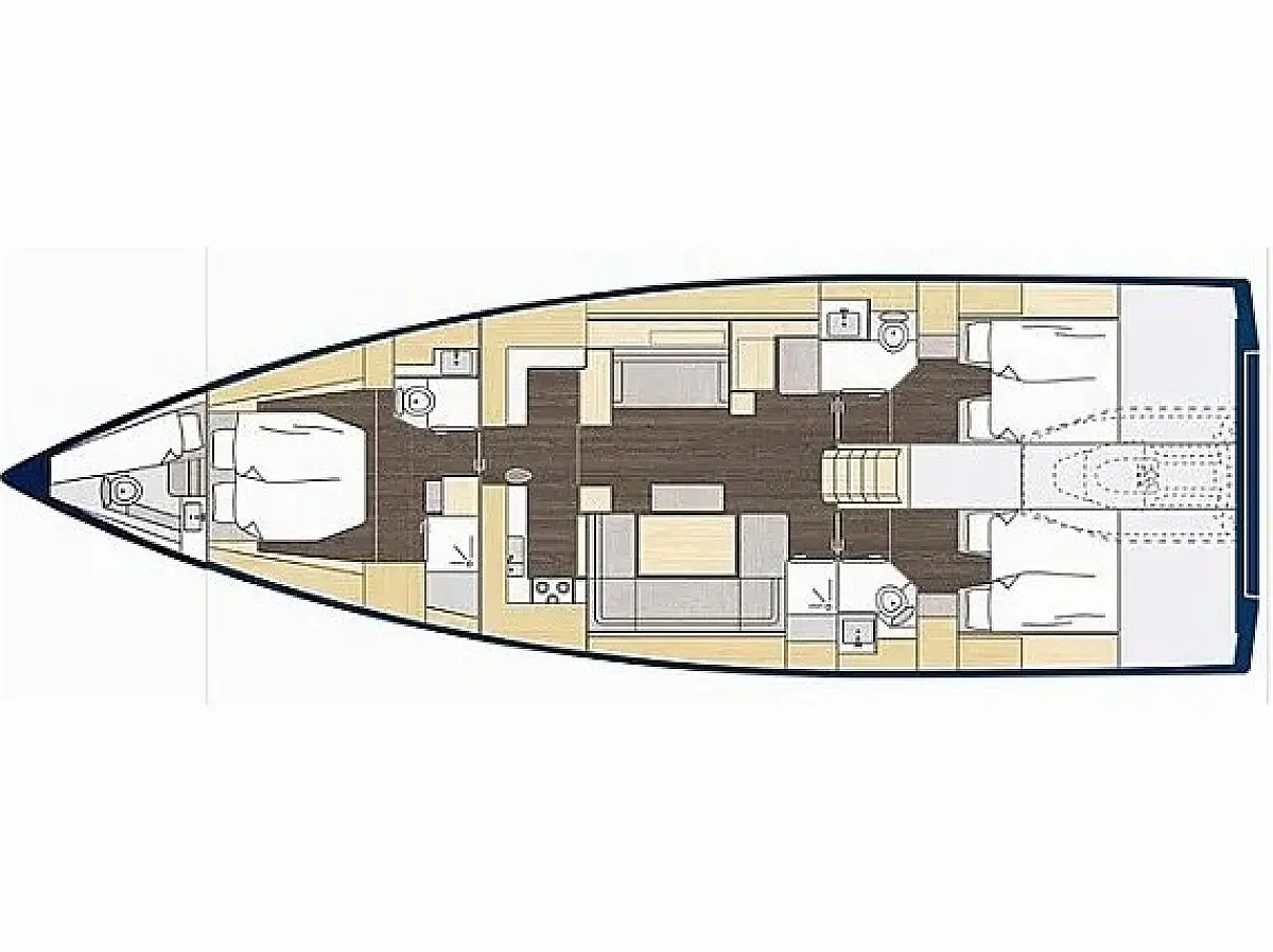 Teak deck, Electric winches, Cockpit cushions, Dinghy, Sprayhood, Inverter, Cockpit speakers, Heating, Air condition, Generator, Water maker