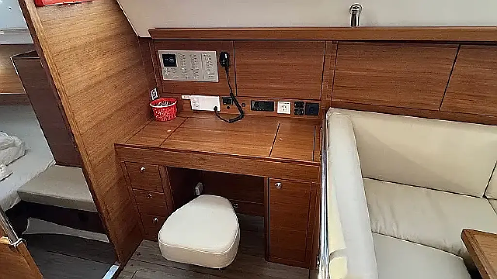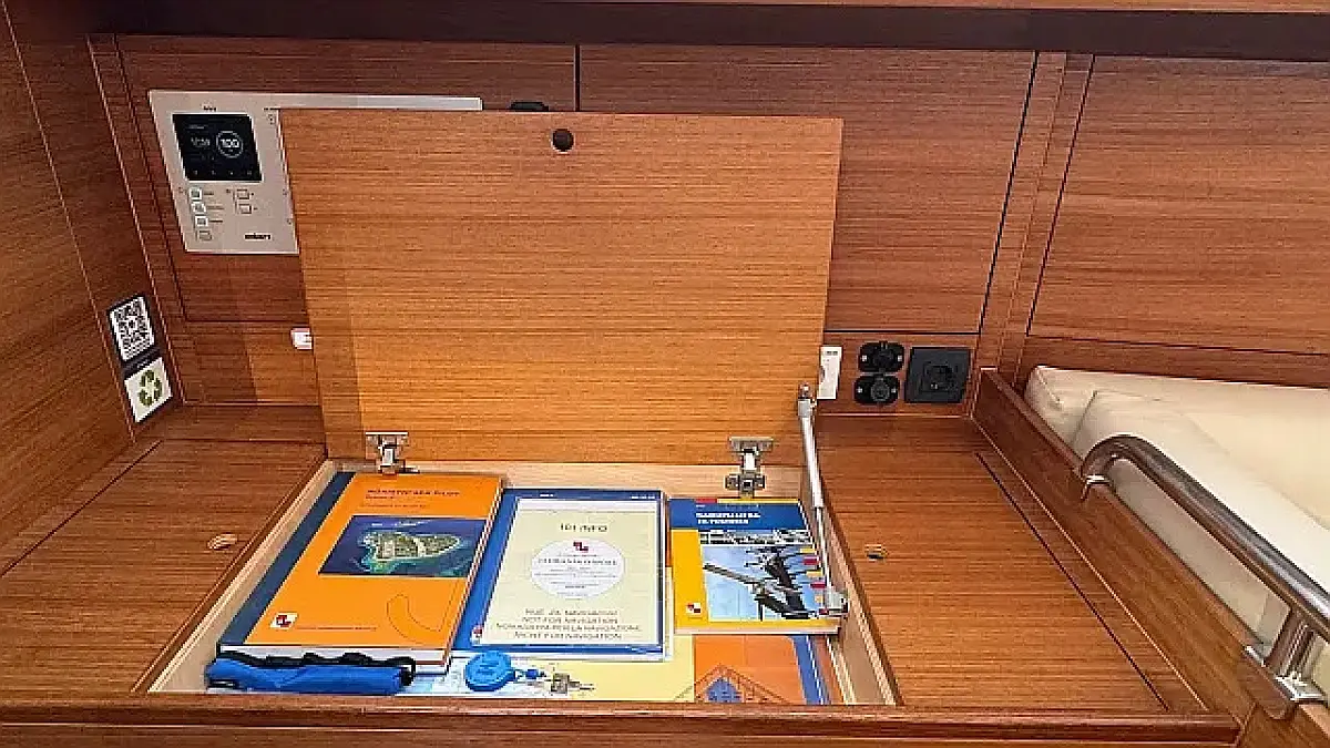 Swimming platform, Bimini, Cockpit cushions, Cockpit speakers, Refrigerator, Heating, Holding tank, Inverter, Sprayhood, Teak Cockpit, Wi-Fi & Internet