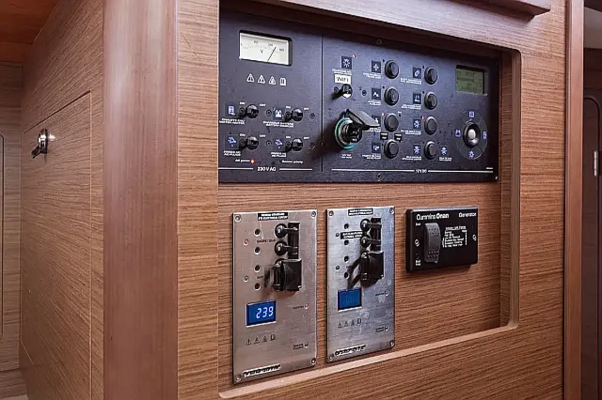 Refrigerator, Air condition, Bimini, Cockpit cushions, Cockpit speakers, Dinghy, Electric toilet, Generator, Heating, Holding tank, Outboard engine, Teak Cockpit, Wi-Fi & Internet, Coffee maker